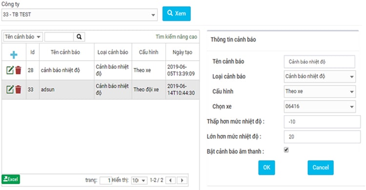 Tạo và cấu hình nhiệt độ cần cảnh báo: Vào Menu quản lý chung >> Quản lý cảnh báo: Menu này cho phép khách hàng tự thay đổi thiết lập linh hoạt theo mặt hàng vận chuyển
