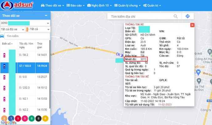 Hướng dẫn cài đặt nhiệt độ, xem báo cáo nhiệt độ trên phần mềm quản lý xe online của Adsun