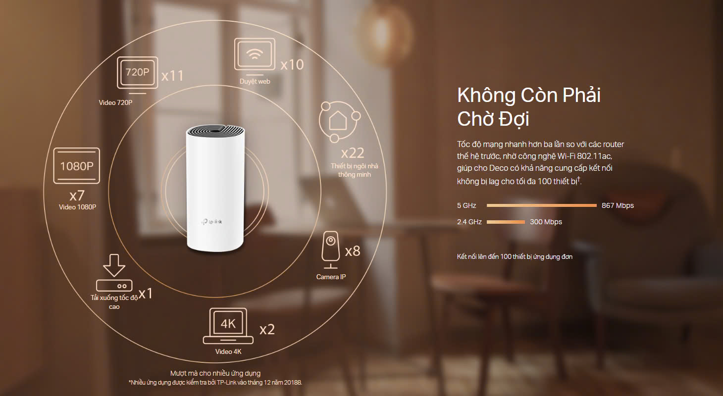 - Deco có thể xử lý dữ liệu truy cập từ các mạng có lưu lượng lớn, cung cấp các kết nối không bị lag lên đến 100 thiết bị.