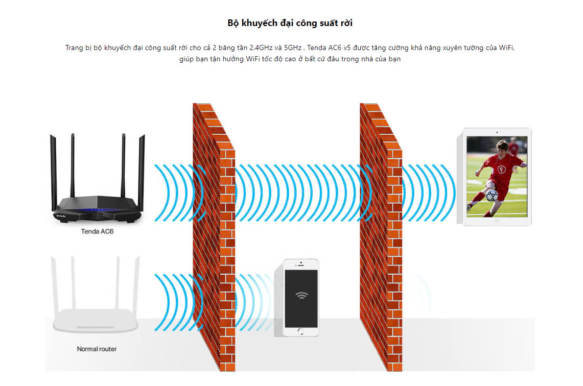 -Hỗ trợ ứng dụng Tenda quản lý từ xa.